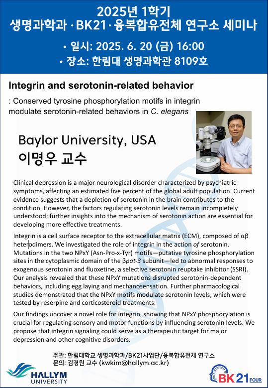 생명과학과 BK21 융복합유전체 연구소 세미나 6/20(금) 16:00