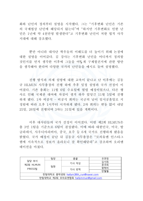 안녕하세요, 제2회 HLMUN PRESS팀 입니다.
