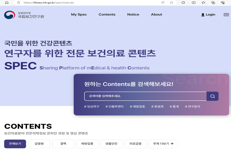 질병관리청 국립보건연구원 https://library.nih.go.kr/spec/main.do