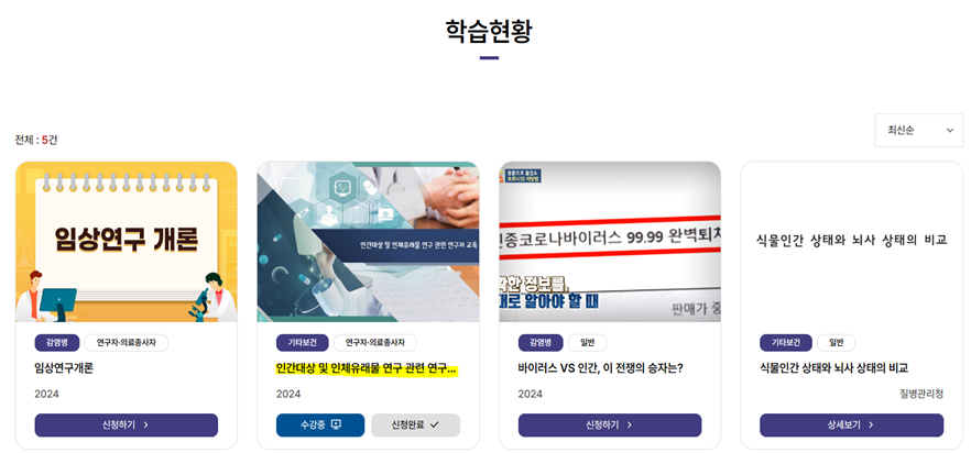 ※본교 생명윤리위원회 심의신청일 기준 2년 이내 생명윤리교육을 이수한 연구자만 심의신청이 능합니다.
