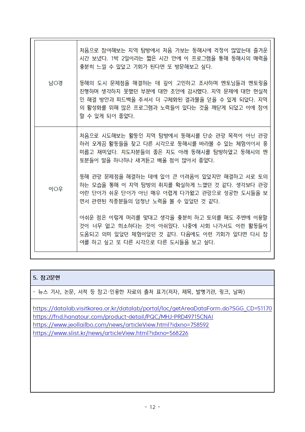 [G역탐방 in 동해] 지역문제 보고서(4팀)