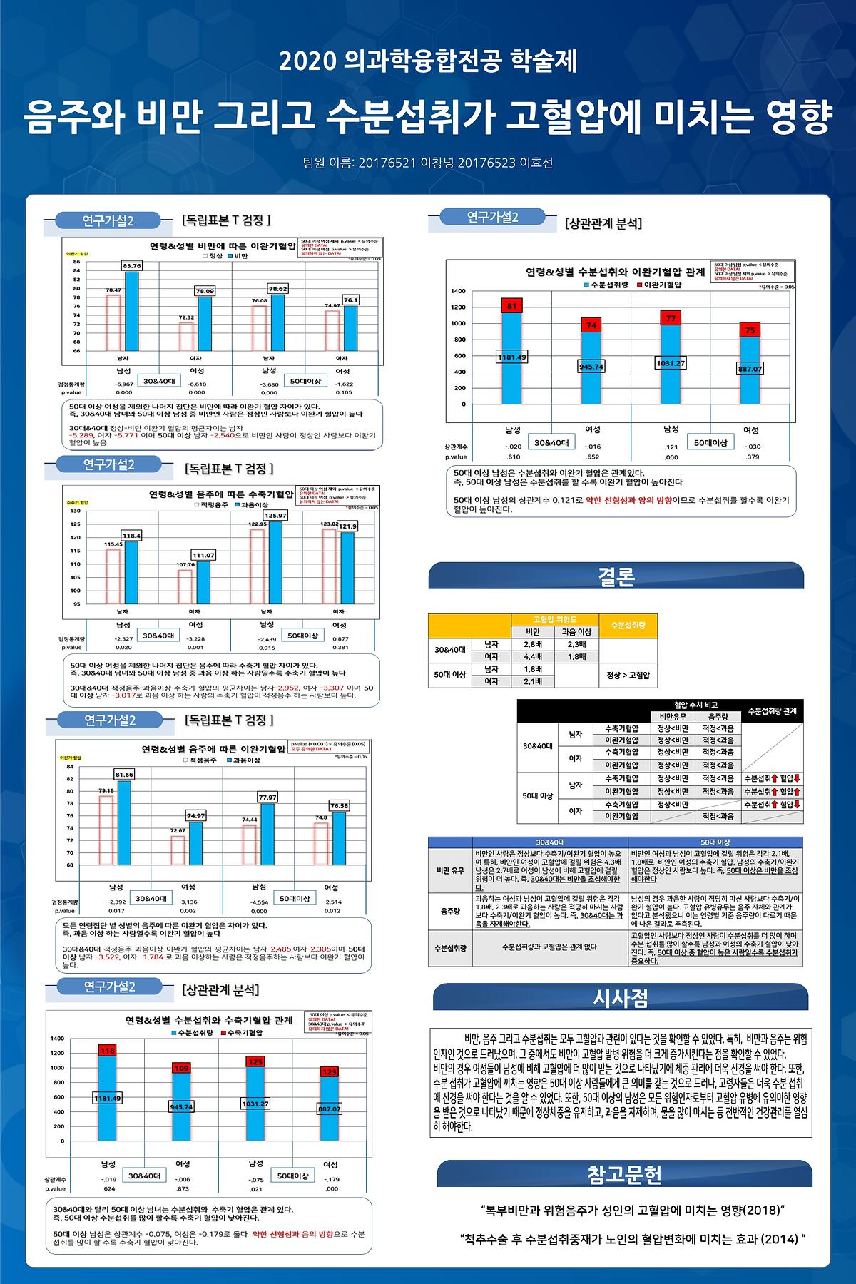 [2020 의과학융합전공 학술제] 음주와 비만 그리고 수분섭취가 고혈압에 미치는 영향