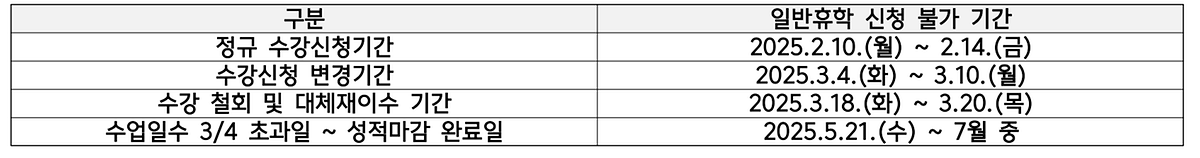 - 휴학 신청 불가 기간