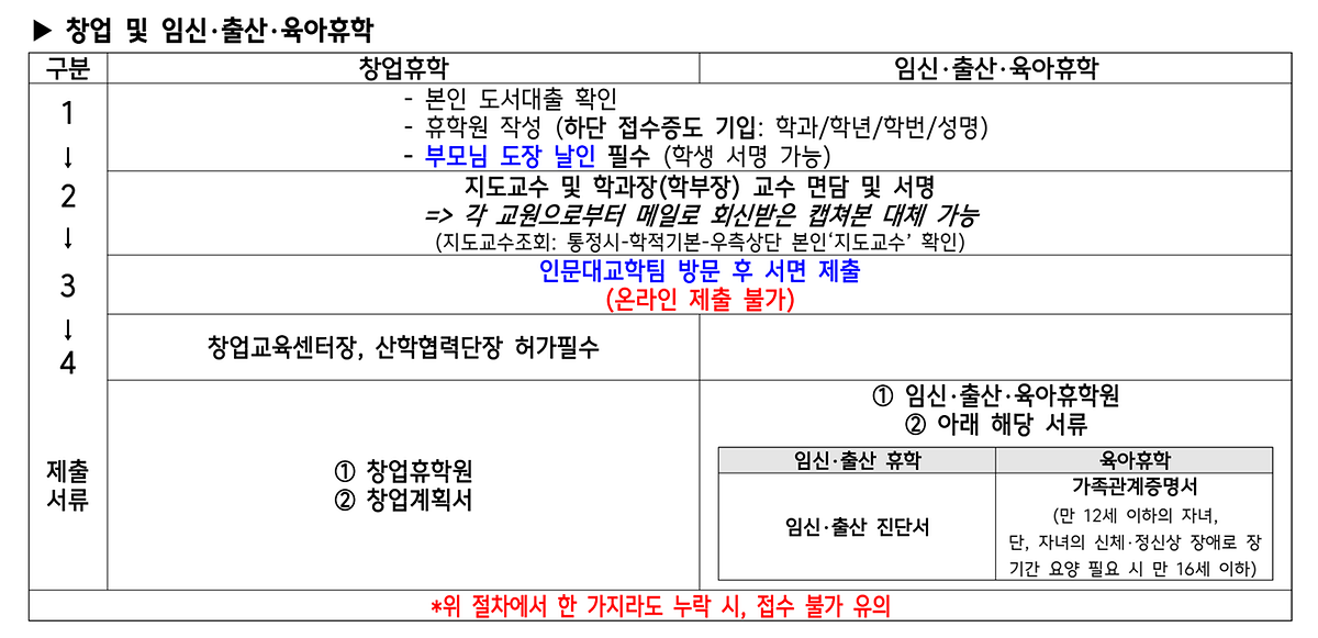 2025학년도 1학기 휴학(일반, 입대, 창업, 임신·출산·육아) 및 복학, 자퇴 안내 드립니다.