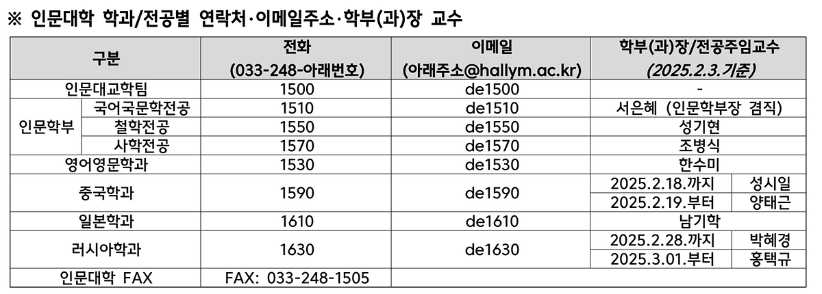 안녕하세요, 인문학부 행정실입니다.