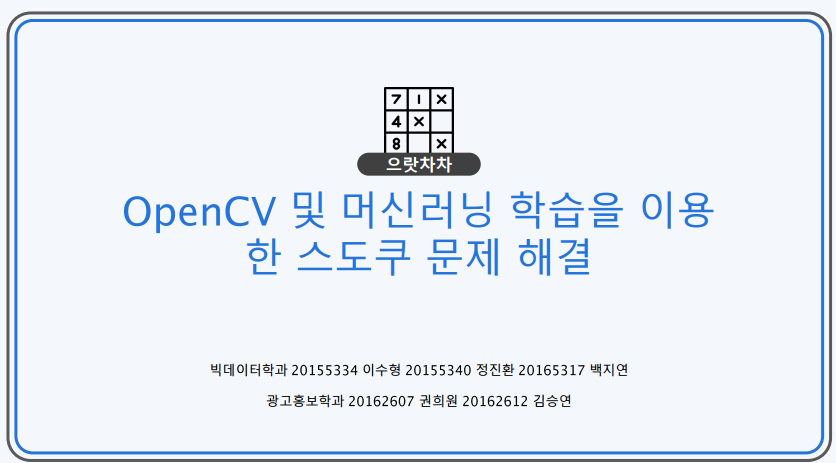 주제 : OpenCV 및 머신러닝 학습을 이용한 수도쿠 문제 해결(1팀)